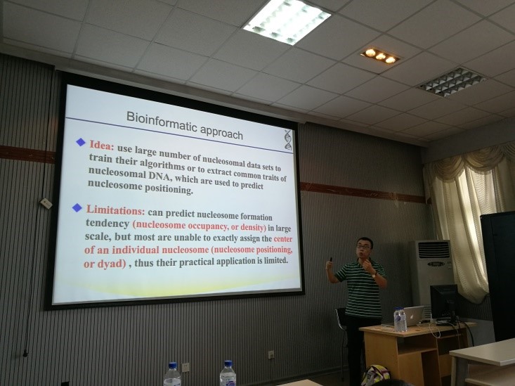 刘国庆教授在报告上介绍了他们团队最近关于DNA变形能在核小体定位和滑动中的作用方面的工作。刘国庆教授通过浅显易懂的语言介绍了他们的研究及结论,让我们了解了DNA变形在核小体定位和滑动中的作用。报告最后的提问阶段非常热烈,很多同学对此提出了自己的疑问,刘国庆教授也非常耐心的一一解答。整个报告持续一个半小时。