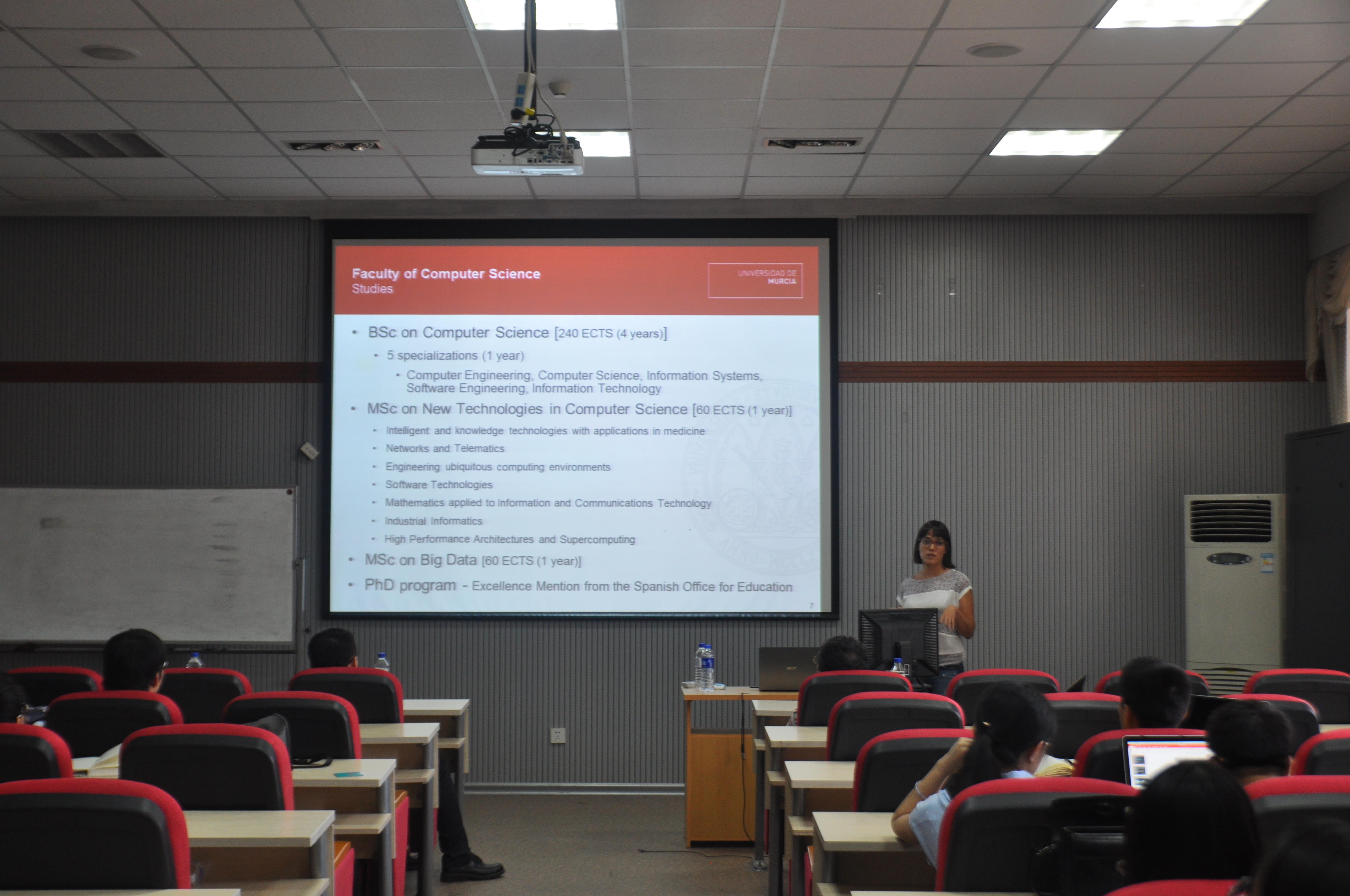 2016年6月14日下午3:00,Victoria Beltra博士为计算机公司的师生作了题为“A platform towards IoT interoperability and security in smart cities”的学术报告。Victoria Beltran博士是University of Murcia的资深研究员,先后在哥伦比亚大学、贝尔实验室等研究机构工作,在电信研究方面有着丰富的实践经验。