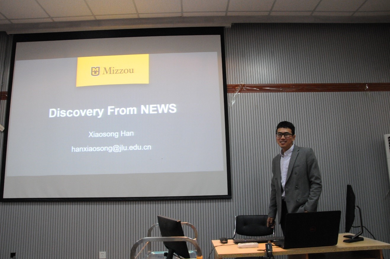 2017年4月17日上午,太阳成集团tyc122ccvip计算机公司韩霄松老师在计算机公司做了题为“基于新闻的大数据挖掘”的学术报告。报告主要介绍了韩霄松老师在美国访问学者期间取得的一系列关于新闻大数据挖掘的研究成果。报告中,韩霄松老师首先介绍了研究动因和新闻大数据的数据来源,然后重点介绍了利用这些数据做的两方面工作。首先是利用深度学习网络对疾病关注度趋势进行预测,并用可视化工具将疾病与关注度之间的关系进行了展示。另一项工作是结合情感分析技术,分析相关的新闻大数据对热点人物进行分析评价。并通过评价时间轴的波动情况进行新闻数据回溯,验证评价准确性。