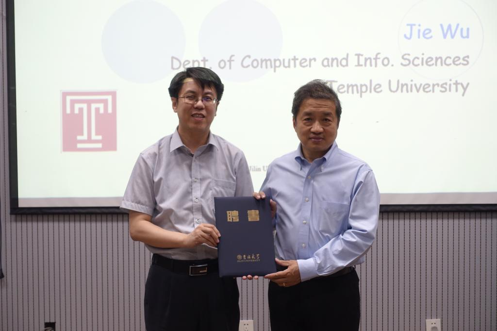 2018年6月12日下午,美国天普大学吴杰教授来公司参加太阳成集团tyc122ccvip客座教授聘任仪式,并且为公司师生作了题为“Algorithmic Crowdsourcing and Application in Big Data”的学术报告。聘任仪式和学术报告由计算机公司经理魏晓辉教授主持。