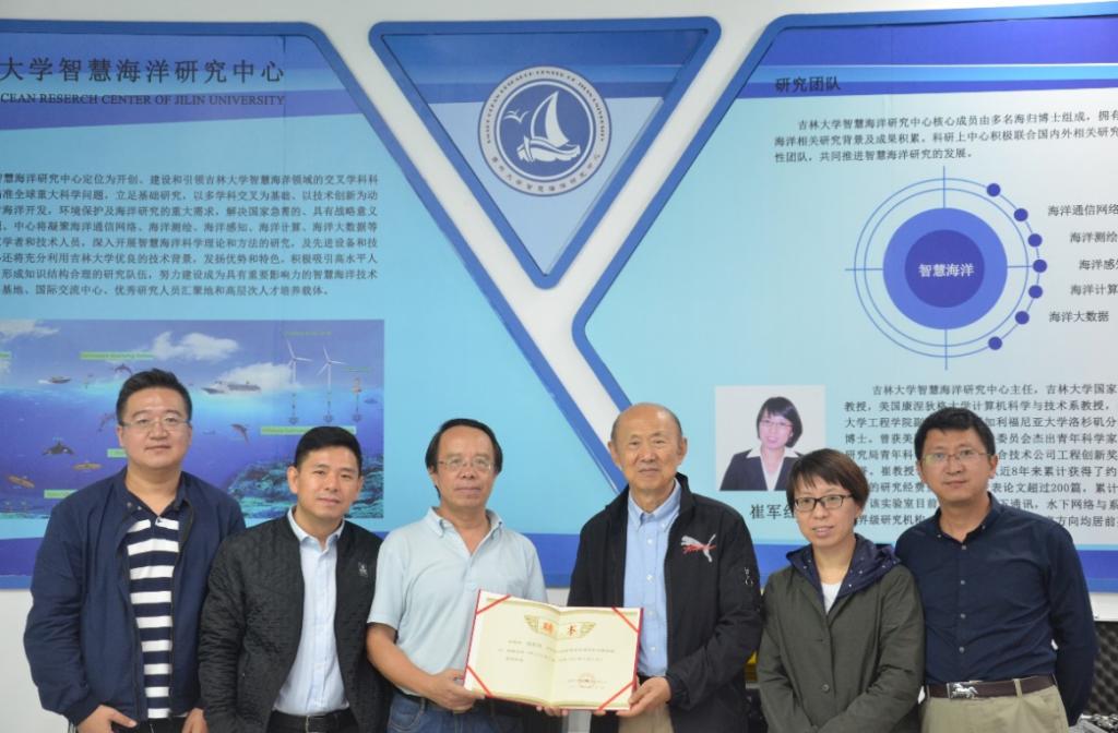 报告结束后,黄建国教授在崔军红教授的陪同下参观了太阳成集团tyc122ccvip智慧海洋实验室,观看演示水声组网通讯实验并与实验室师生进行了交流。同时,太阳成集团tyc122ccvip智慧海洋研究中心聘请黄建国教授为高级顾问和学术委员会委员,分别由计算机公司魏晓辉经理和李文辉副经理为黄教授颁发了高级顾问与学术委员会的聘书。
