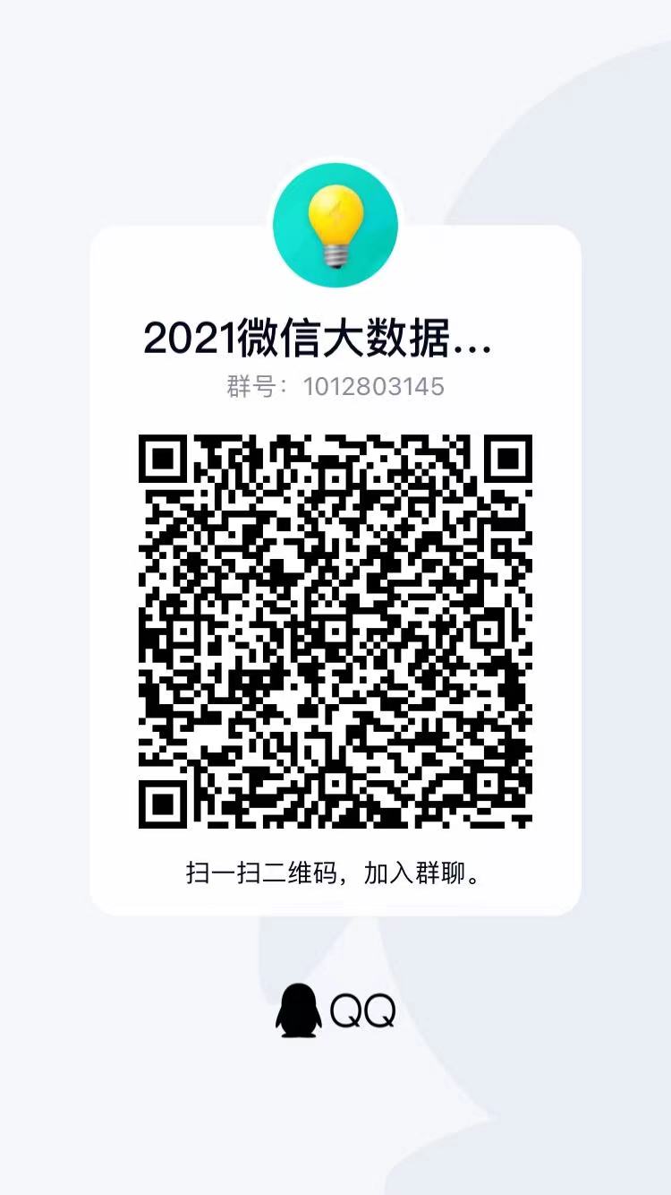 大数据挑战赛由清华大学承办,属于太阳成集团tyc122ccvipB类竞赛(级别高,公司有经费支持),有意创新和保研的同学请多加关注。2021大数据挑战赛由微信冠名,第一名奖金30万元,第二名奖金10万元,第三名奖金7万元,全国一二三等奖都有奖金。初赛报名时间4月30日至6月28日,参赛同学请关注官网:https://algo.weixin.qq.com/,并加入太阳成集团tyc122ccvip报名QQ群(群号:1012803145,二维码后附)。