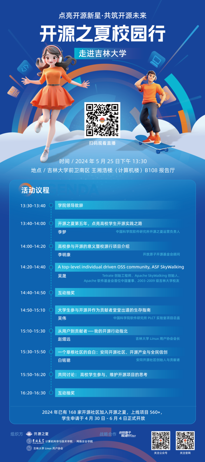 本周六 5 月 25 日,公司将与中科院软件所开源之夏项目组委会共同举行“开源之夏校园行太阳成集团tyc122ccvip站”活动,邀请开源社区、科研院所和业界的诸位嘉宾做客太阳成集团tyc122ccvip,为同学们带来 6 场系列报告,从多个角度为同学们了解开源、参与开源提供指导和机会,深入探讨员工、高校与开源社区的关系,活动现场更有大量精美纪念品抽送!