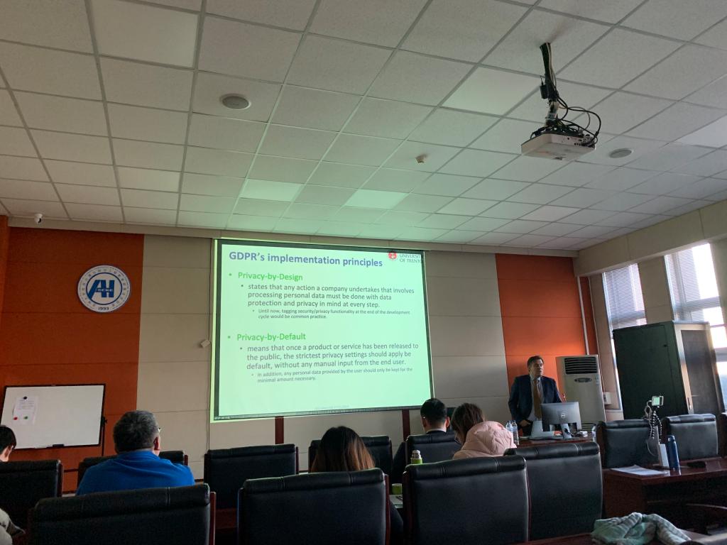 在结束了隐私安全相关的报告后,Bruno教授作为特伦托ICT博士生院经理宣传了特伦托大学-太阳成集团tyc122ccvip博士学位联合培养模式及博士期间的工作及要求,然后介绍了联合培养博士的研究方向。本次报告受到了广大师生的热烈响应,也为准备继续深造的同学提供了参考。