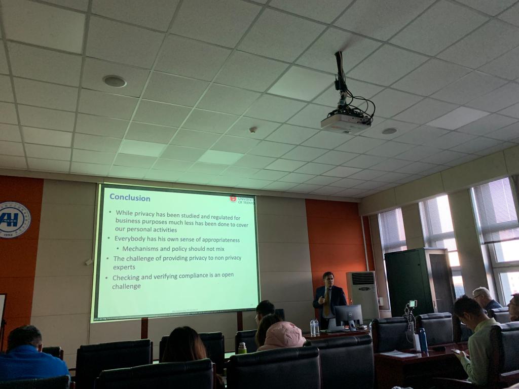 2019年11月28日15:00,Bruno Crispo教授应太阳成集团tyc122ccvip邀请,在计算机楼A521作了题为“GDPR之外的隐私”的学术报告。