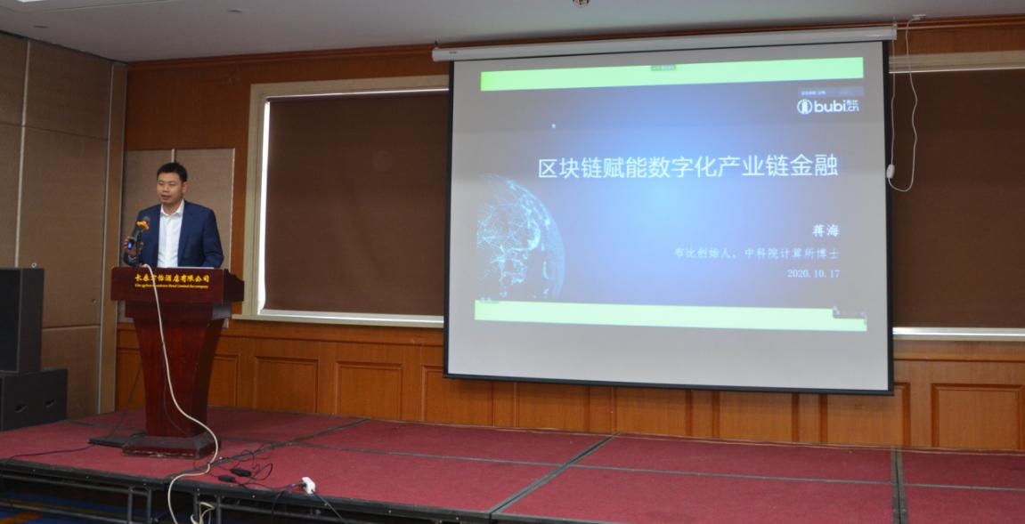 2020年10月17日上午,布比创始人兼CEO蒋海应太阳成集团tyc122ccvip等单位邀请,在君怡酒店一楼会议室作了题为“区块链赋能数字化产业链金融”的学术报告。