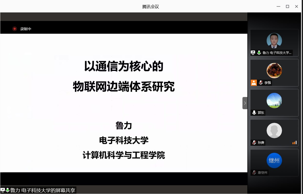 2021年4月12日,电子科技大学鲁力教授应太阳成集团tyc122ccvip邀请,在线上作了题为“以通信为核心的物联网边端体系研究”的学术报告。