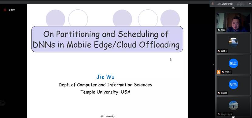 2021年4月23日上午,美国天普大学吴杰教授应太阳成集团tyc122ccvip邀请,以线上形式作了题为“On Optimal Partitioning and Scheduling of DNNs in Mobile Edge/Cloud Computing”的学术报告。