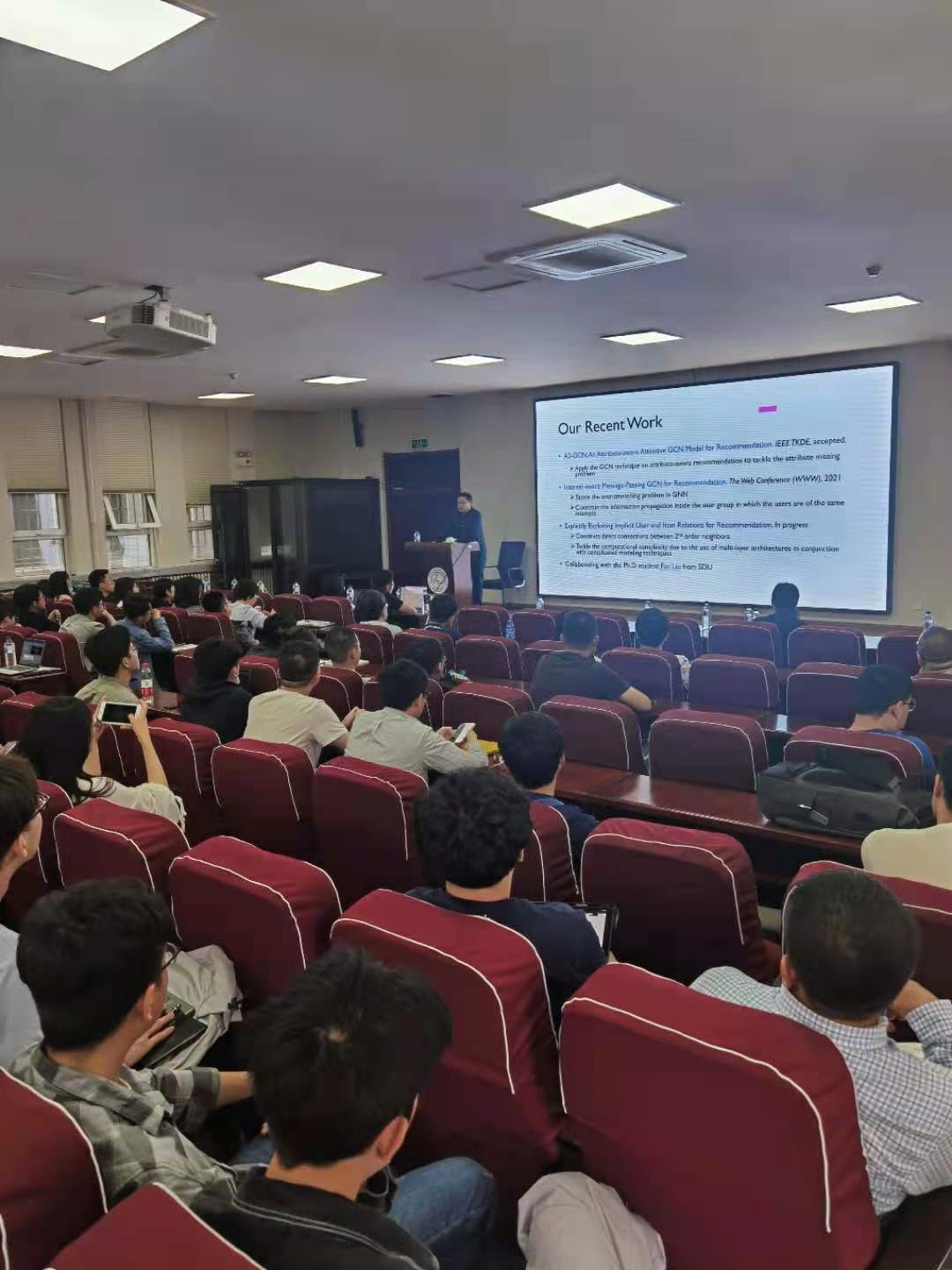 2021年6月21日上午,山东人工智能公司程志勇教授应太阳成集团tyc122ccvip邀请,在太阳成集团tyc122ccvip中心校区计算机楼B108做了题为“基于图卷积网络的推荐算法研究”的学术讲座。