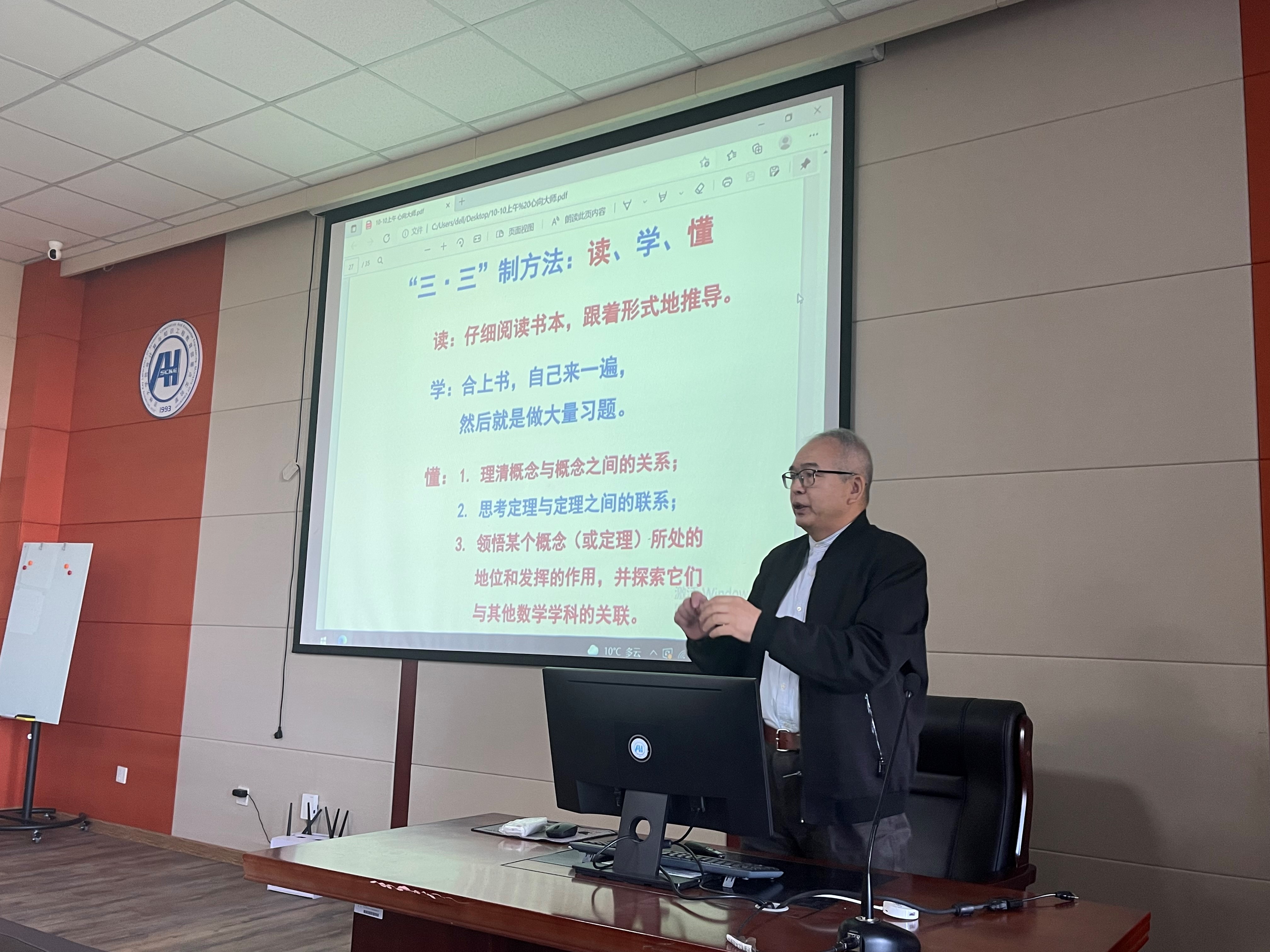 刘老师特别强调:影响成长的关键因素里,什么是最宝贵的?时间、时间,还是时间!什么是最重要的?坚持、坚持,再坚持!本科与研究生阶段是最有时间去学习的时候,要多花功夫了解和思考,同时最重要的是将基础打扎实。尽管花大量的功夫对每个员工都不容易,但绝不可错过最佳的学习时机。为此,刘老师为大家介绍了一种“三·三”制学习方法:读、学、懂。读是指:仔细阅读书本,跟着形式地推导。学是指:合上书,自己来一遍,然后就是做大量习题。懂是指:首先要理清概念与概念之间的关系;其次要思考定理与定理之间的联系;最后能够领悟某个概念(或定理)所处的地位和发挥的作用,并探索它们与其他数学学科的关联。