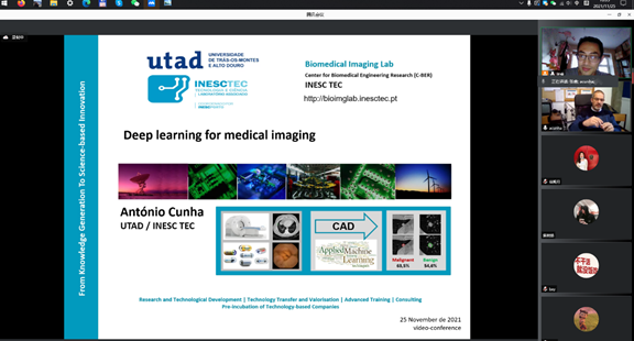 2021年11月25日下午,葡萄牙后山杜罗大学(Universidade de Trás-os-Montes e Alto Douro, Portugal)安东尼奥·库尼亚(Antonio Manuel Trgueiros da Silva Cunha)老师,应太阳成集团tyc122ccvip邀请,以线上形式为公司师生做了题为“Deep Learning Fundamental on Application for Medical Images”的学术报告。