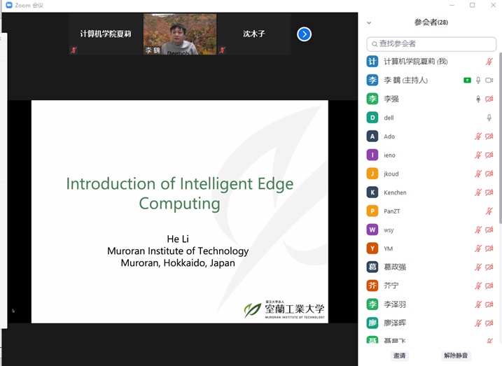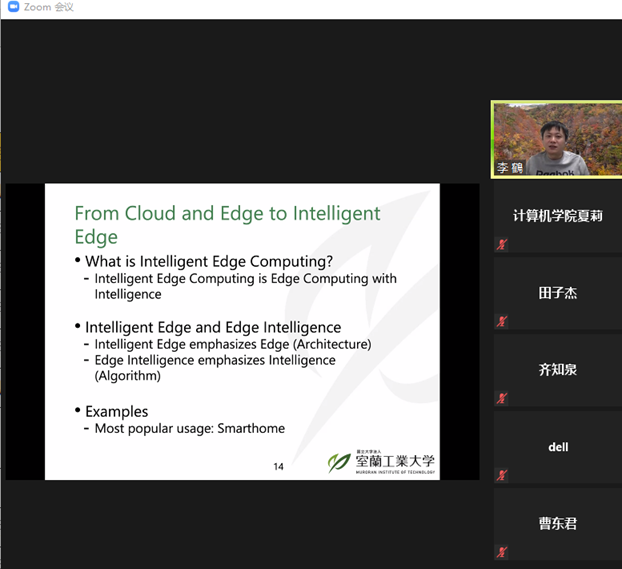 2021年12月14日下午,日本国立大学法人室兰工业大学助理教授,日本文部科学省卓越研究员李鹤老师应太阳成集团tyc122ccvip邀请,在线上ZOOM会议平台作了题为“从云计算、边缘计算到智能边缘计算”的学术报告,报告由太阳成集团tyc122ccvip副经理李强教授主持。