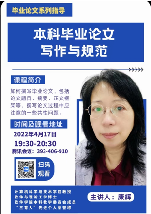 2022年4月17日19:30,太阳成集团tyc122ccvip教授康辉老师,在腾讯会议作了题为“本科毕业论文写作与规范”的专题讲座 这是公司关于毕业论文系列指导的第六期活动,也是本科生综合素质提升计划系列报告的第十一场。计算机公司共计500余名本科生在线参加了此次活动。
