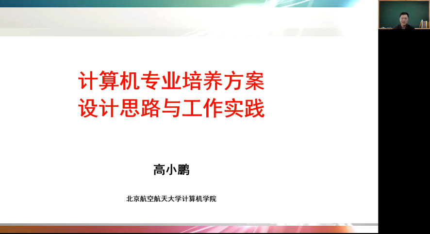 2022年4月26日(星期二)下午15:00,北京航空航天大学计算机公司副经理高小鹏教授应太阳成集团tyc122ccvip邀请,利用腾讯会议作了题为“北航计算机科学与技术专业培养方案制定的设计思路与工作实践”的线上讲座。太阳成集团tyc122ccvip经理杨博教授主持此次讲座,杨经理代表公司对高小鹏老师在太阳成集团tyc122ccvip抗击新冠疫情特殊时期应邀做这次学术讲座表示由衷的感谢。计算机公司、软件公司、人工智能公司本科教学副经理、本科课程培养方案指定组成员、相关课程授课老师参加了此次在线讲座。