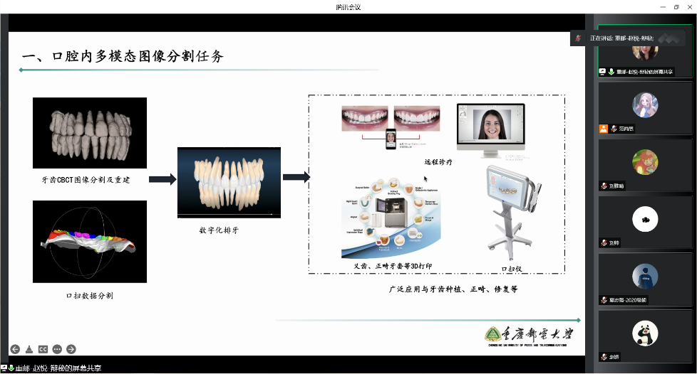2022年6月17日,重庆邮电大学赵悦副教授应太阳成集团tyc122ccvip邀请,利用腾讯会议作了题为“数字化口腔关键技术的研究与应用”的学术讲座。