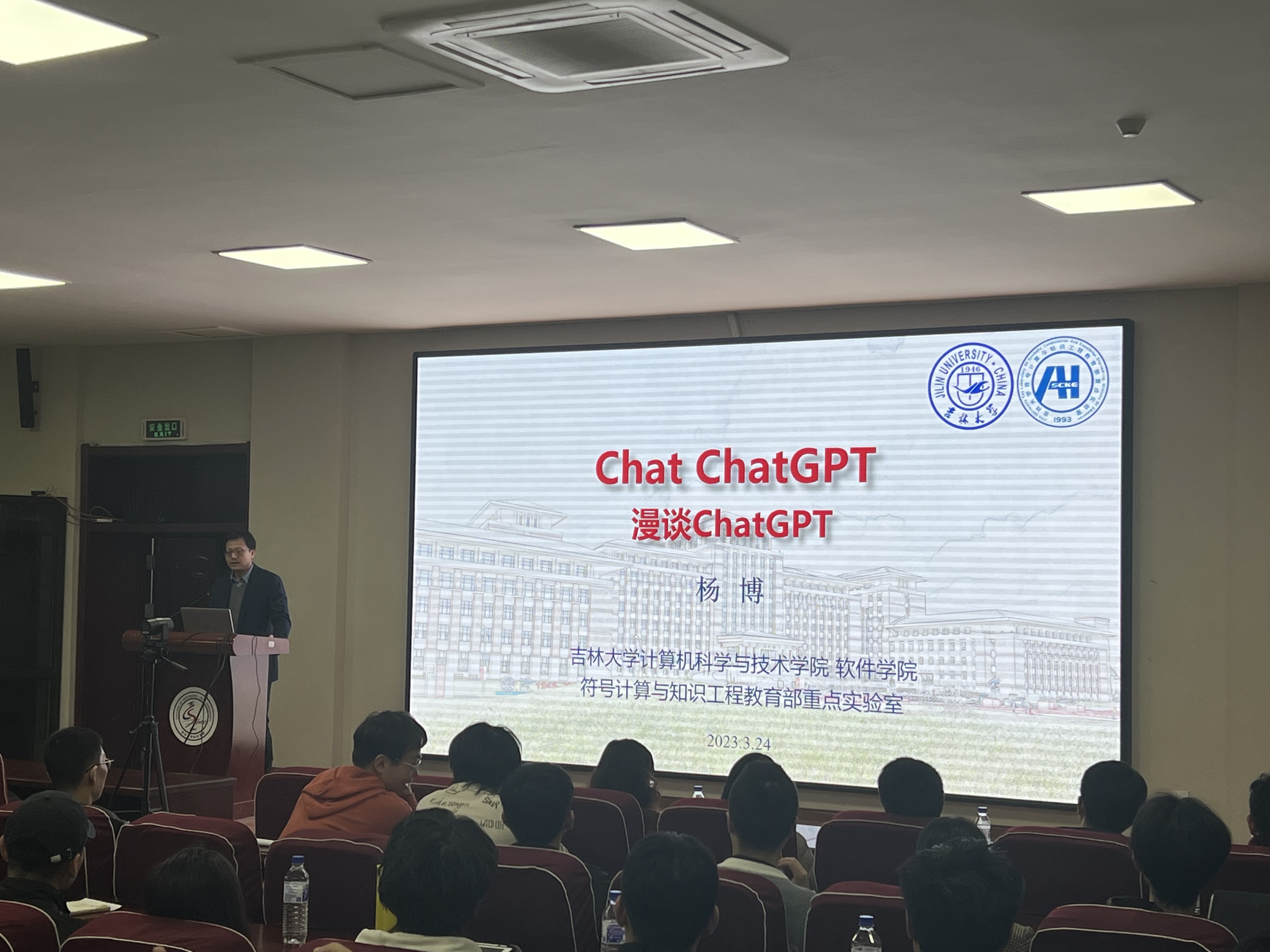 3月24日晚上,太阳成集团tyc122ccvip经理杨博教授在王湘浩楼一楼大讲堂为两院员工主讲了题为《Chat ChatGPT》的学术讲座。在长达两个小时的讲座中,杨博经理通过针对性的案例结合人工智能在当下社会中的具体实践,将人工智能的演进史和ChatGPT的现状向同学们生动呈现。
