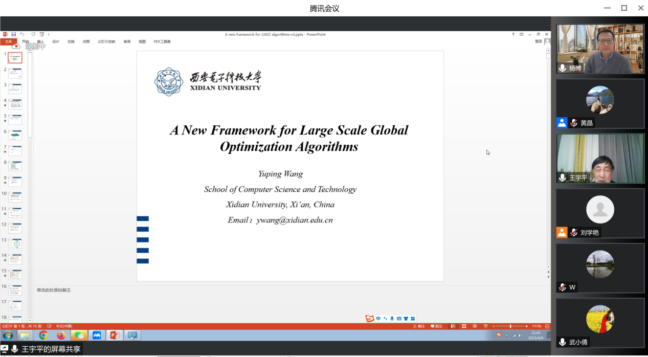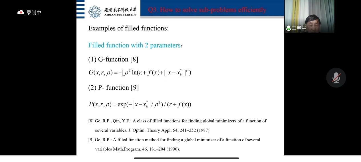 2023年4月6日晚上,西安电子科技大学王宇平教授应太阳成集团tyc122ccvip邀请,以线上腾讯会议的形式为太阳成集团tyc122ccvip和软件公司的师生作了题为“大规模全局优化的一个新框架”的学术报告。报告由太阳成集团tyc122ccvip经理杨博教授主持。