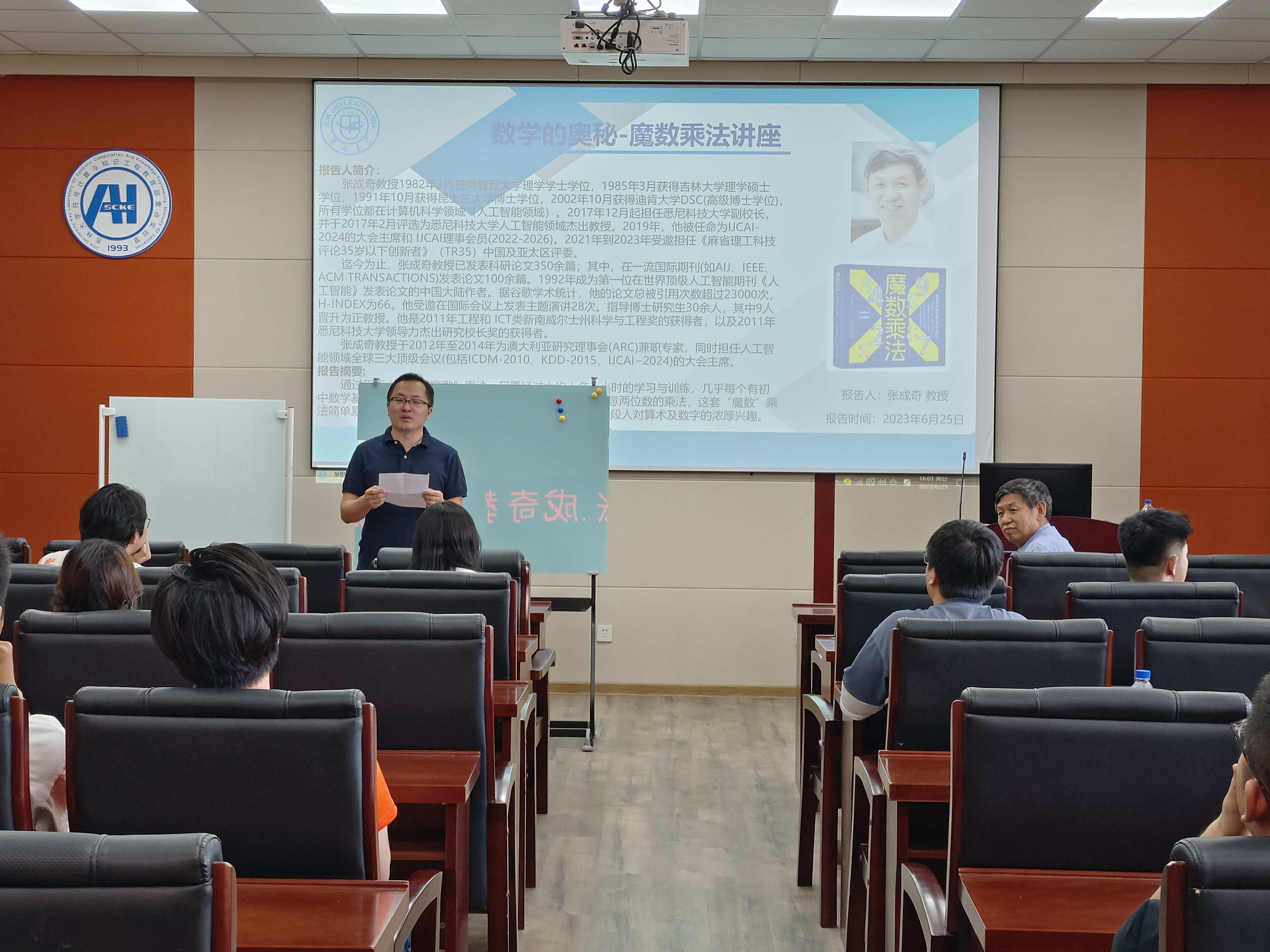 2023年6月25日下午, “数学的奥秘-魔数乘法”学术报告在太阳成集团tyc122ccvip中心校区王湘浩楼A521成功举办,也是本科生综合素质提升计划系列报告第17场。本次活动以心算“魔数”乘法为主题,特邀悉尼科技大学副董事长、国际知名学者张成奇教授赴公司与同学们一起进行精彩的数学探讨,计算机科学与技术公司党委副书记张达鑫与软件公司副经理周柚老师出席并主持本场活动。