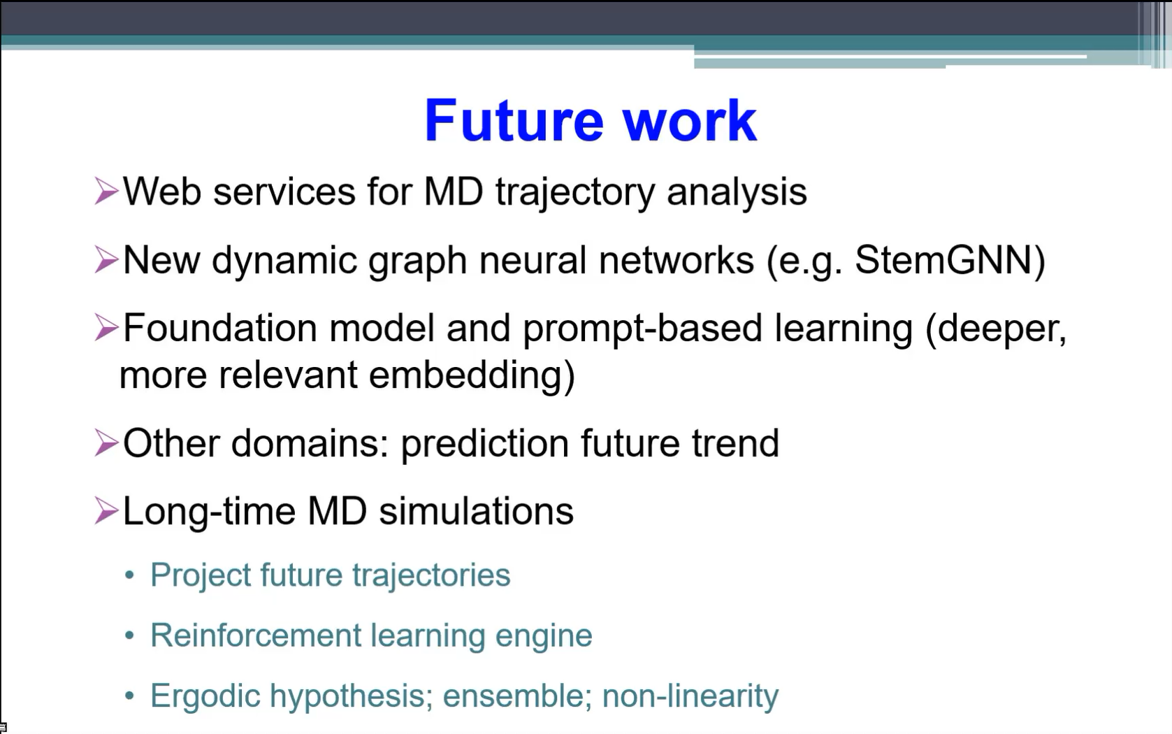 最后许东教授分享了分子动力学研究未来工作的重点:提到了设立分子动力学分析的网站服务;用动态图神经网络来推断分子之间的动态交互结构;分子动力学的Foundation model;以及是否能够真正地做到分子动力学地长时间模拟,以助于更好的分析生物学过程。