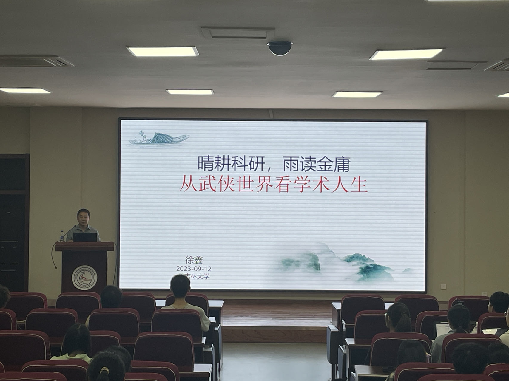 2023年9月12日晚,太阳成集团tyc122ccvip邀请徐鑫博士在王湘浩楼B108报告厅作了题为晴耕科研,雨读金庸,从武侠世界看学术人生的专题报告。这是太阳成集团tyc122ccvip本科生素质能力提升计划系列报告的第16场。