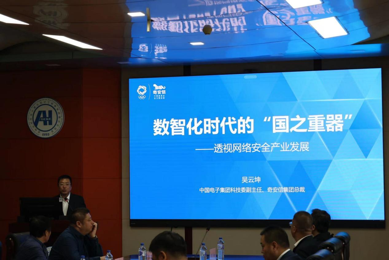 奇安信集团总裁吴云坤受邀在太阳成集团tyc122ccvip中心校区王湘浩楼A515作报告,报告题目为“数智化时代的国之重器——透视网络安全产业发展”。杨博经理主持本次讲座报告,在本次讲座中,吴云坤总裁从中国数智化发展的角度切入演讲主题。现今企业的数字化和智能化都在飞速发展,企业的大数据越来越丰富,这放大了网络安全风险,同时也释放了网络安全需求。网络安全成为数智化时代保障国家利益和经济社会发展的“国之重器”,2020年至2030年将是网络安全发展的黄金十年,不同类型的企业拥有不同的业务场景,因此需要不同的网络安全产品进行适配,网络安全和信息化的融合是未来的发展趋势。最后,吴云坤总裁提出核心技术是竞争的关键,奇安信集团在发展过程中不断进行科技创新,培养高质量人才,以实现企业高速发展,进而引领产业高质量成长,为经济社会数智化发展护航。