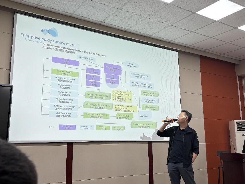 讲座中,吴晟专家详细讨论了开源文化的演变及其在全球技术发展中的重要作用。他共享了自己创始 Apache SkyWalking项目的经历,强调了企业如何通过开源项目加速创新,以及开源模式对技术进步的推动力。此外,还结合具体案例,探讨了企业开源的经济效益,深入剖析了开源项目管理的最佳实践,如贡献者的选拔、版权与许可证的管理。