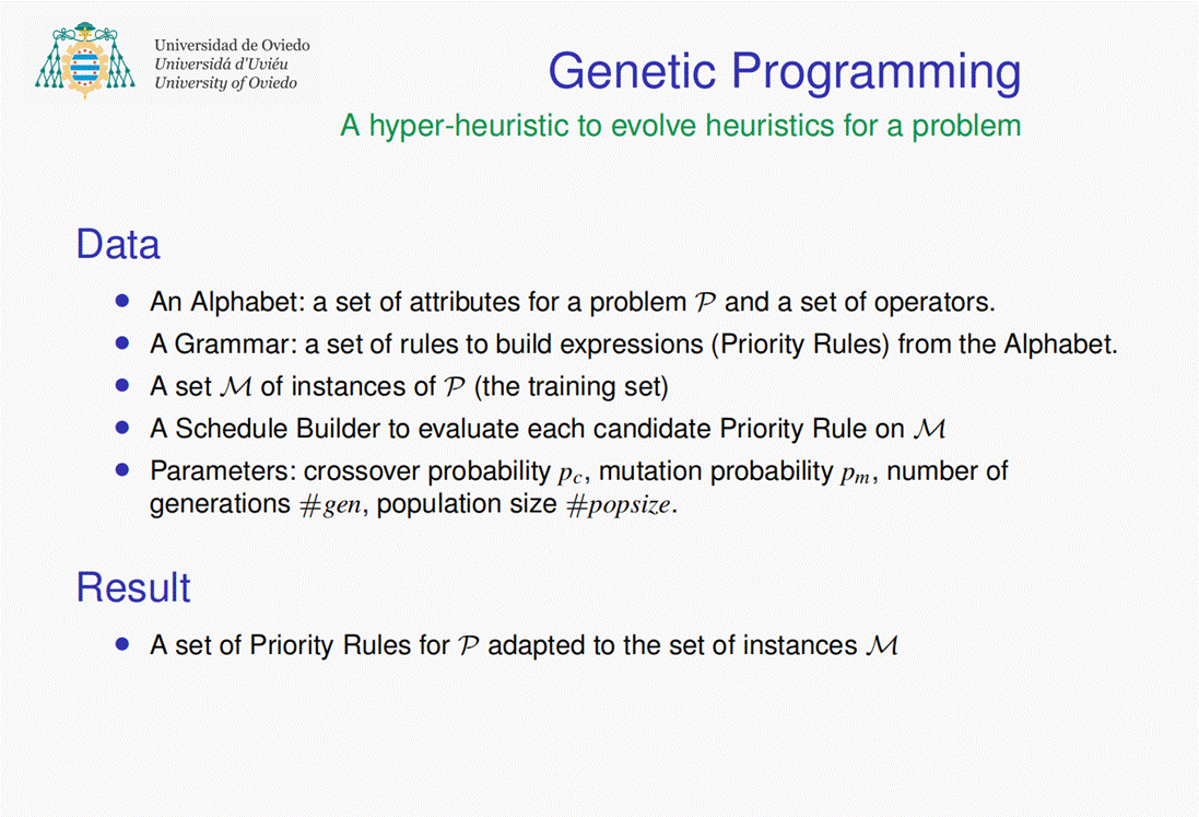 在此次报告中,Ramiro教授主要介绍了iScOp 团队开发的一种遗传编程方法,该方法以优先级规则的形式发展调度启发式方法,允许贪婪算法适应具有相似特征的问题实例系列。
