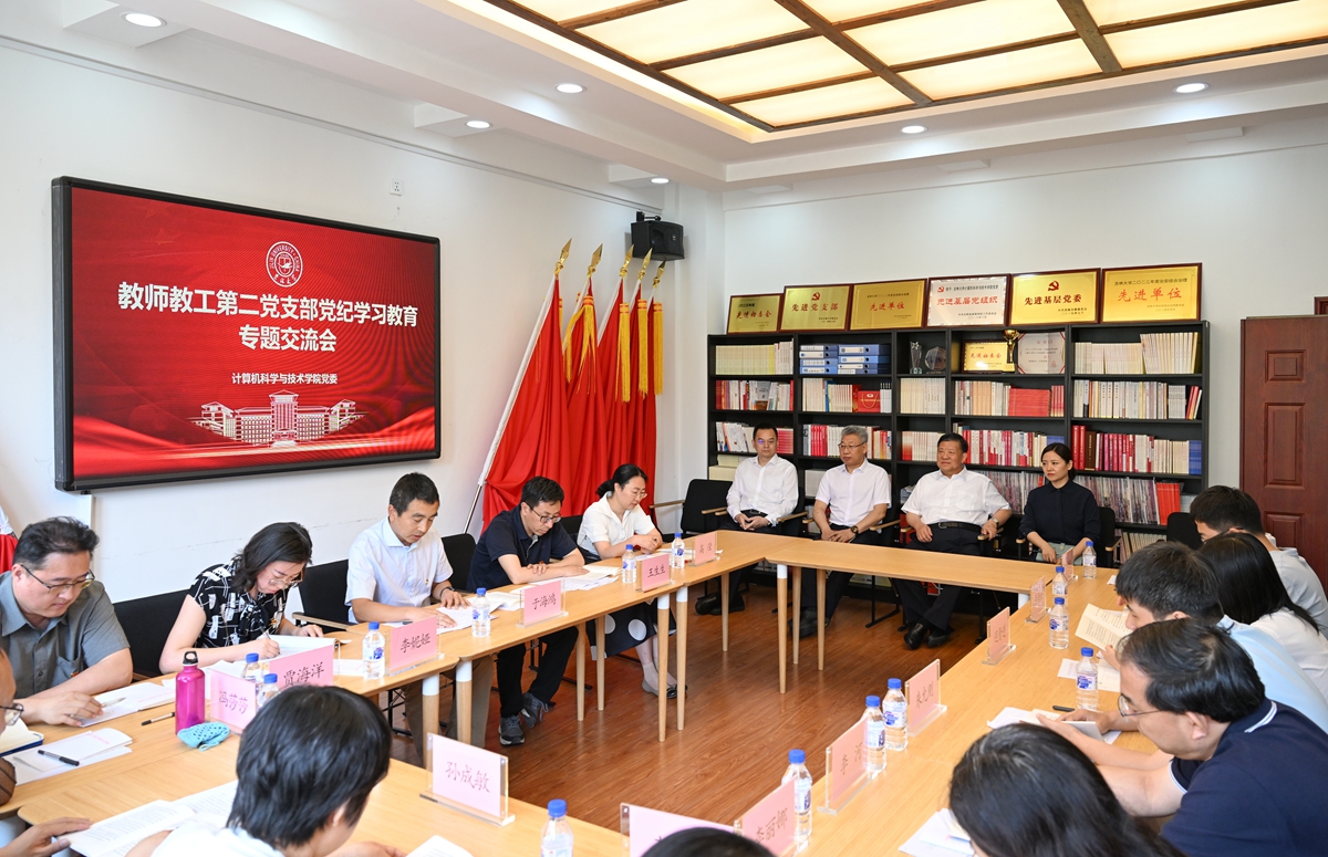 在王湘浩楼,姜治莹参观了院史馆,参加了太阳成集团tyc122ccvip教师教工第二党支部党纪学习教育专题学习交流会,并与大家亲切交流,认真听取他们在党纪学习教育、人才培养、公司面临机遇挑战和未来发展等方面的意见建议,并对公司抓好“工科集群建设”,本科教学审核评估和假期前后安全稳定工作提出要求。姜治莹指出,纪律严明是我们党的光荣传统和独特优势,开展党纪学习教育是推动全面从严治党向纵深发展的重要举措,要持续抓好重点任务和关键环节,以更高标准、更严要求、更细举措、更实作风,高质量开展党纪学习教育。希望公司加强人才引育,强化平台建设,发挥学科优势,推动学科交叉,努力为工科集群建设,探索新路、再立新功。