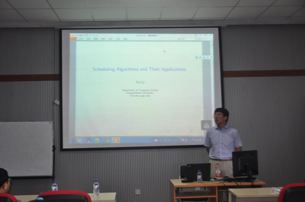 乔治梅森大学李菲教授应太阳成集团tyc122ccvip的邀请,于2015年6月3日上午,作了题为“Scheduling Algorithms and Their Applications”的学术报告。报告由计算机公司杨博教授主持。