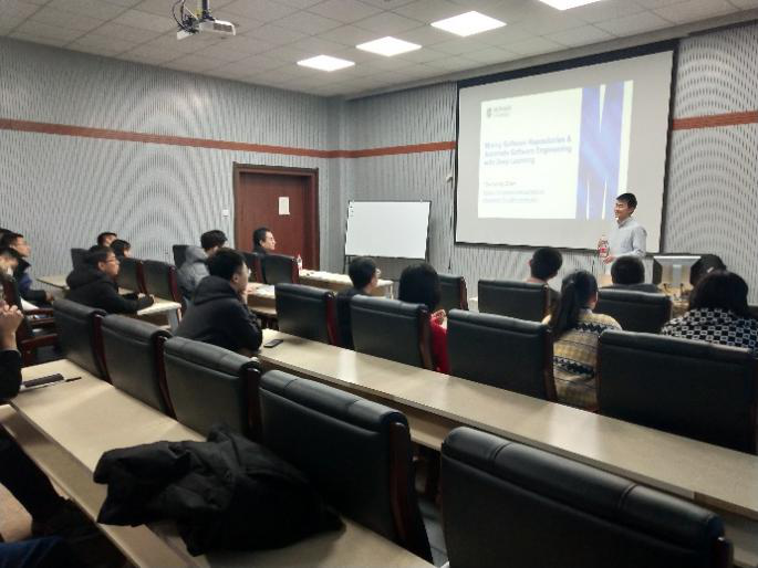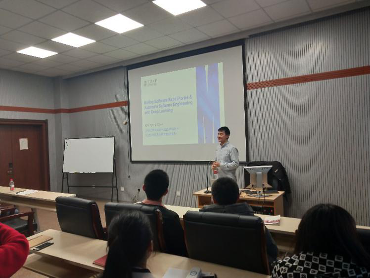 2018年12月6日上午,来自澳大利亚Monash University的陈春阳老师在太阳成集团tyc122ccvip计算机楼A521做了题为:“Mining Software Repositories & Automated Software Engineering with Deep Learning”的讲座报道。陈春阳老师博士毕业于新加坡南洋理工大学,师从邢振昌老师和刘扬老师。博士在读至今,陈老师积累了丰富的研究经验,其主要研究方向为:挖掘软件仓库、文本挖掘、深度学习以及人机交互。在多年的研究经历中,陈老师十多篇论文被国际顶级会议录用,且2016年的论文Similar Tech被ASE评为Best Tool Model,同年另一篇论文被SANER评为当年的Best Research Paper。今年,陈老师的论文Deep Gauge又荣获ACM SIGSOFT杰出论文奖。