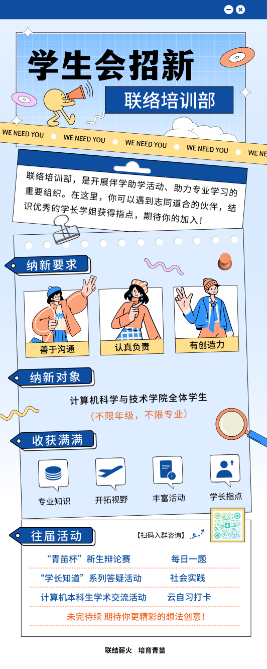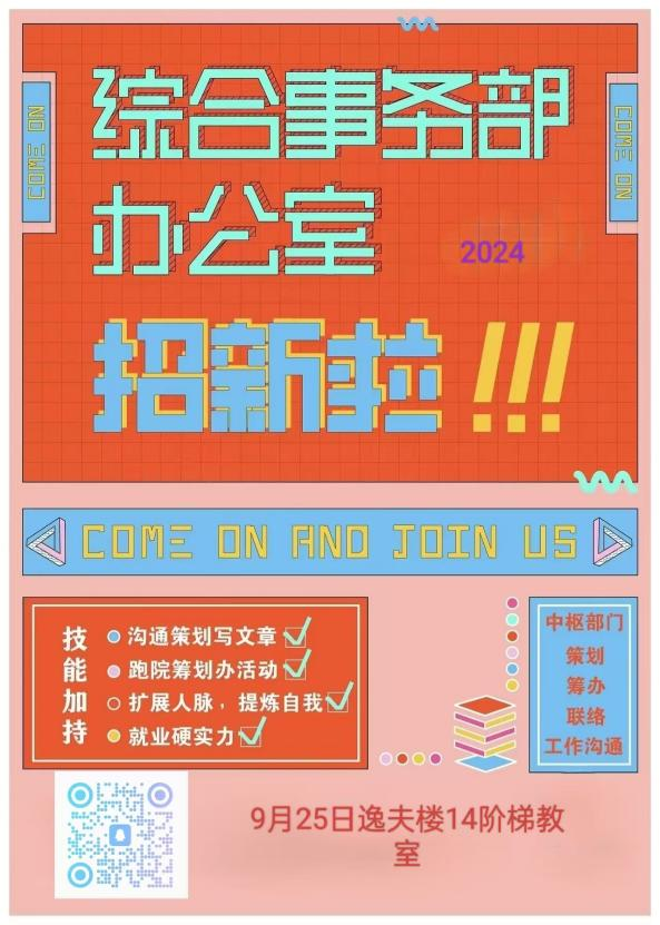 欢迎所有对社团工作有热情的同学加入社联大家庭,相信在工作和生活中你会收获很多成长与感动。