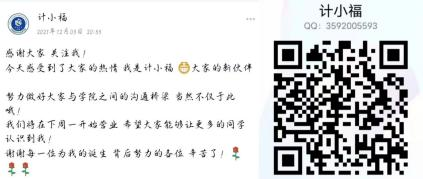 1.本部门经营着计科特有的小助手—计小福,发布通知,统计并解答计科学子们在校园生活遇到的问题,让大家更好的了解老员工活。
