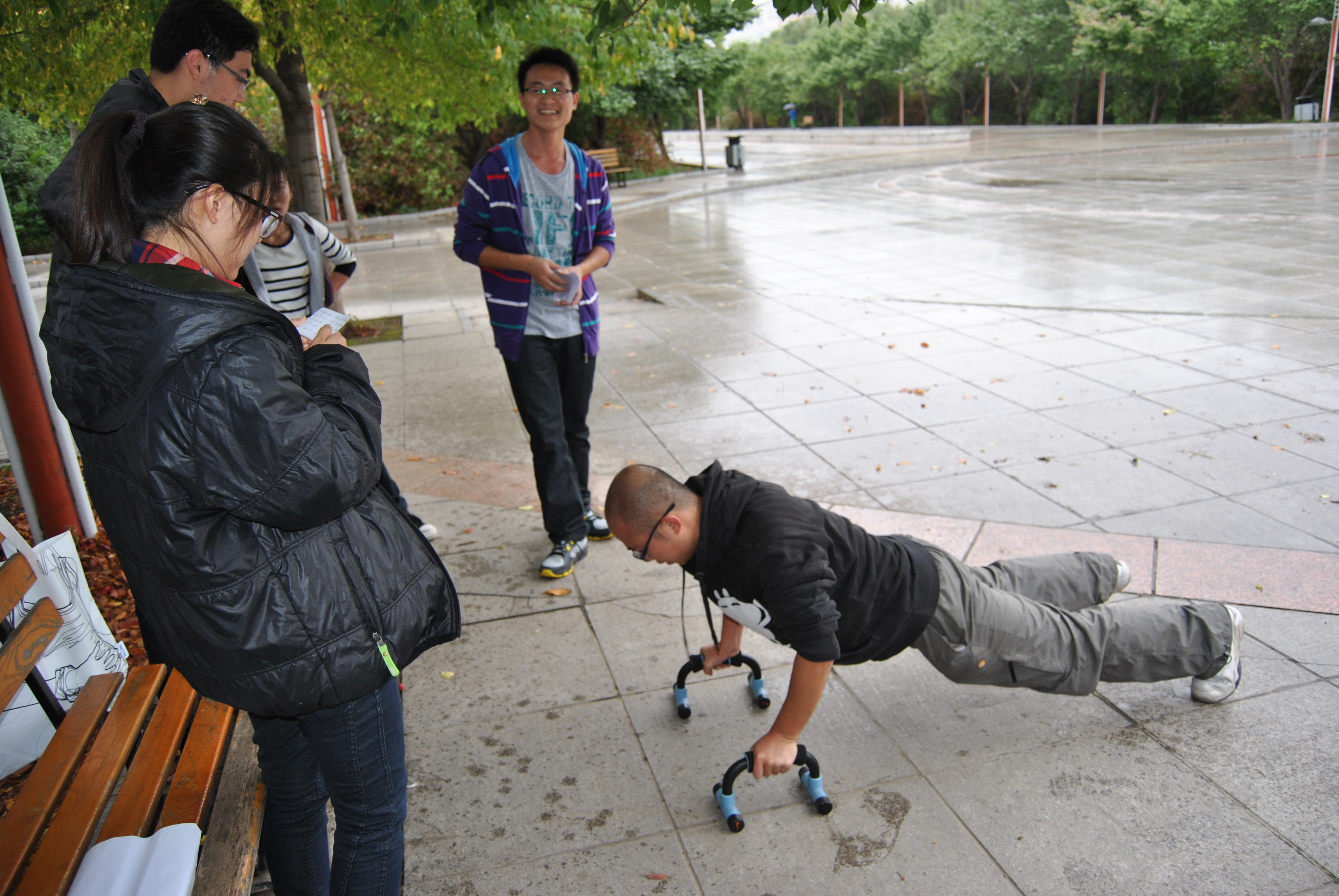 在筹备定向越野活动的前期,公司研究生会的工作人员做了大量的准备工作。从地点的选择到地点游戏的设定,从地图地标的制作到活动现场的规划。23日下午两点本次活动在计算机大楼正式拉开帷幕,来自各班级的13支参赛队伍早已做好准备。天空飘落的雨滴没有丝毫减弱同学们的热情,道路的泥泞也没消解同学们的积极性。工作人员宣读比赛规则并下发地图,队员们以小组为单位以最快的速度规划了路线的选择。当工作人员宣布比赛开始后就以迅雷不及掩耳之势迅速奔向地图所示的起点处,整个校园随处可见同学们相互鼓励、积极搜寻的身影。经过紧张激烈的奔跑和寻找,第一支队伍在42分钟后结束了10个点定位的定向越野,回到了起点位置,接下来的队伍也陆续完成了比赛。随后对参赛队员进行了颁奖活动,整个比赛在同学们意犹未尽的讨论中圆满结束。