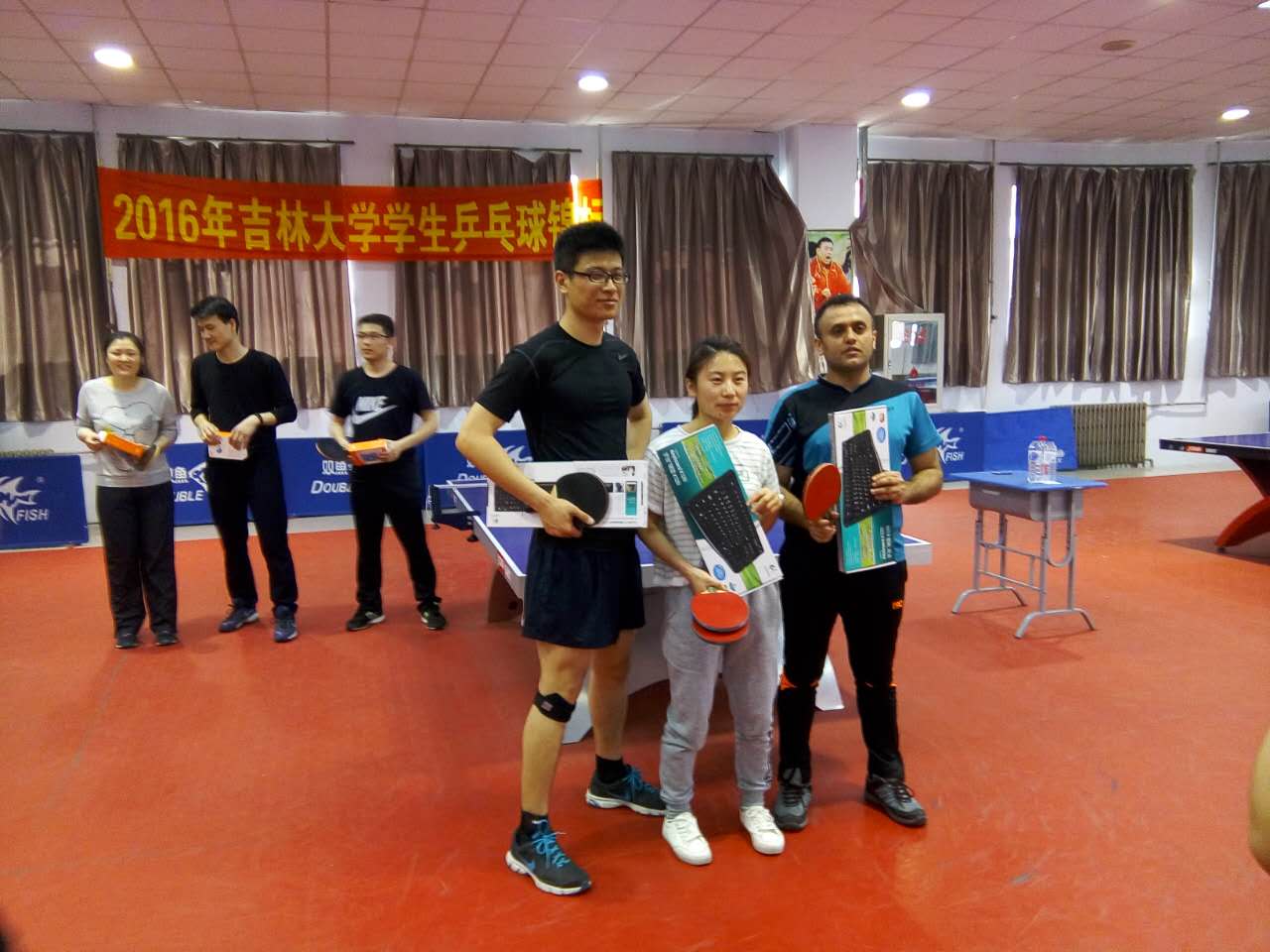 比赛于2017年4月16日上午9点在体育馆开始进行,共有四十多位选手参加,分别设立男单、女单和团体三个组别。在比赛中,选手们精神抖擞、顽强拼搏,互相切磋,相互学习,推挡、削球、旋转球、弧线球、扣球,每一球都扣人心弦,让人目不暇接。比赛场上不时传出“打得好”、“好球”的欢呼加油声。现场气氛热烈,师生参与积极性高涨。选手们虽不是专业运动员,但他们在赛场上挥洒汗水,挥洒激情,团结协作,奋勇拼搏,充分发挥了各自的潜能,比赛场面精彩纷呈。经过4个小时的激烈角逐,最终成绩如下:知识工程与知识科学实验室和智能控制与嵌入式实验室获得团体赛的冠军和亚军,朱晓东老师和陈贺昌获得男单冠军和亚军,祁琪与朱颖获得女单的冠军和亚军。