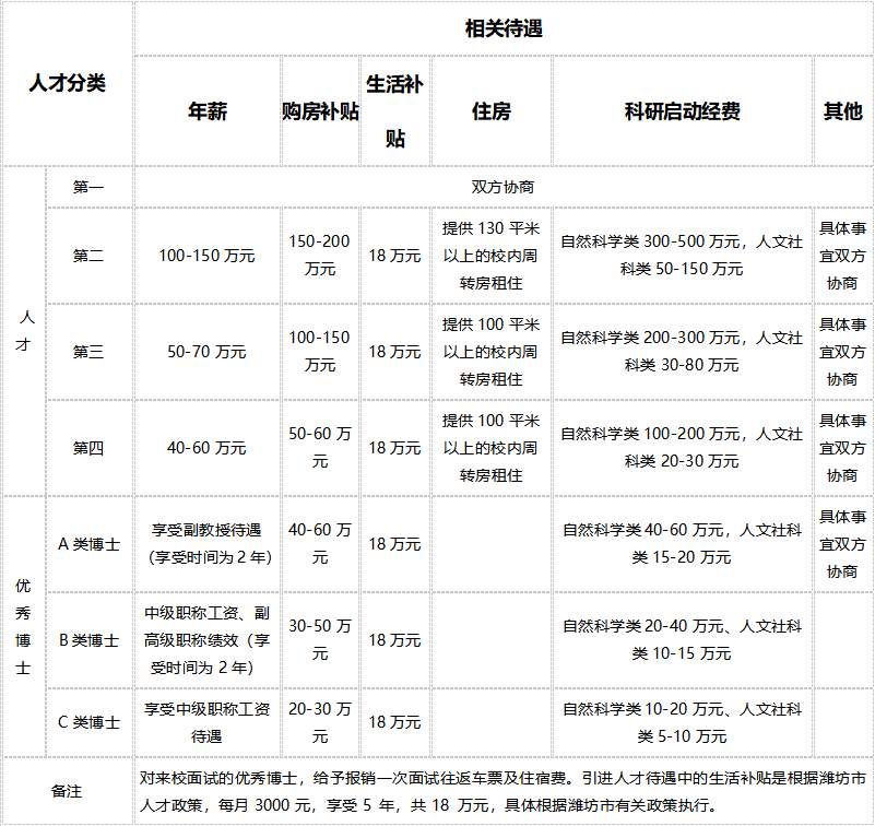 (三)引进人才待遇中的生活补贴是根据潍坊市人才政策,每月3000元,享受5年,共18万元。购房补贴中公司购房补贴为公司一次性发放(税前),潍坊市30万购房补贴具体根据潍坊市有关政策执行。