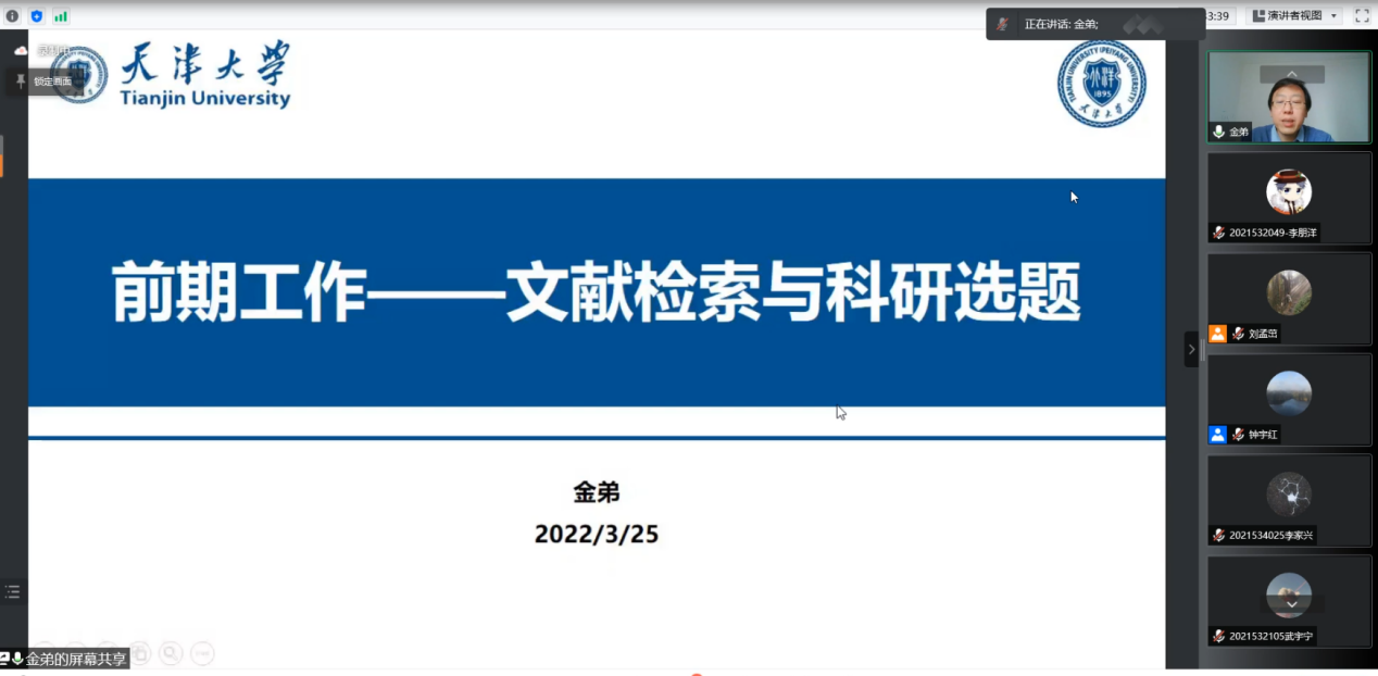 会议下半场,金弟老师对论文写作进行指导。包括如何检索,如何选题。文献检索从文献分类、文献来源,检索方式,文献整理四个方面进行介绍。金弟老师认为,文献阅读是科研的重要基础,可以通过文献阅读了解课题背景,不断修正研究方案。接下来是如何选题,认为选题得当与否往往是决定科研成败和科研成果大小的首要环节,可以从领域热点、当前难点,科研发展趋势、科技发展的判断、自己的能力爱好等几个方面入手。要多看文献,做梳理,同时与导师、师兄师姐多交流,吸取经验。